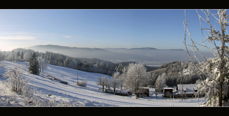fajn pohled, ale je zde pár nedostatků...ten strom vpravo-příště ho ve snímku vynech...fotka je po expoziční stránce poměrně přeexponovaná, takže příště uber na kompenzaci expozice a zkus si snímek naexponovat na ten sníh...a poslední věc-příště do snímku zaber o něco víc popředí, klidně místo té oblohy, páč ta je furt stejná a stačí jí zachytit málo...potom ten snímek bude působit i víc prostorově...ahoj