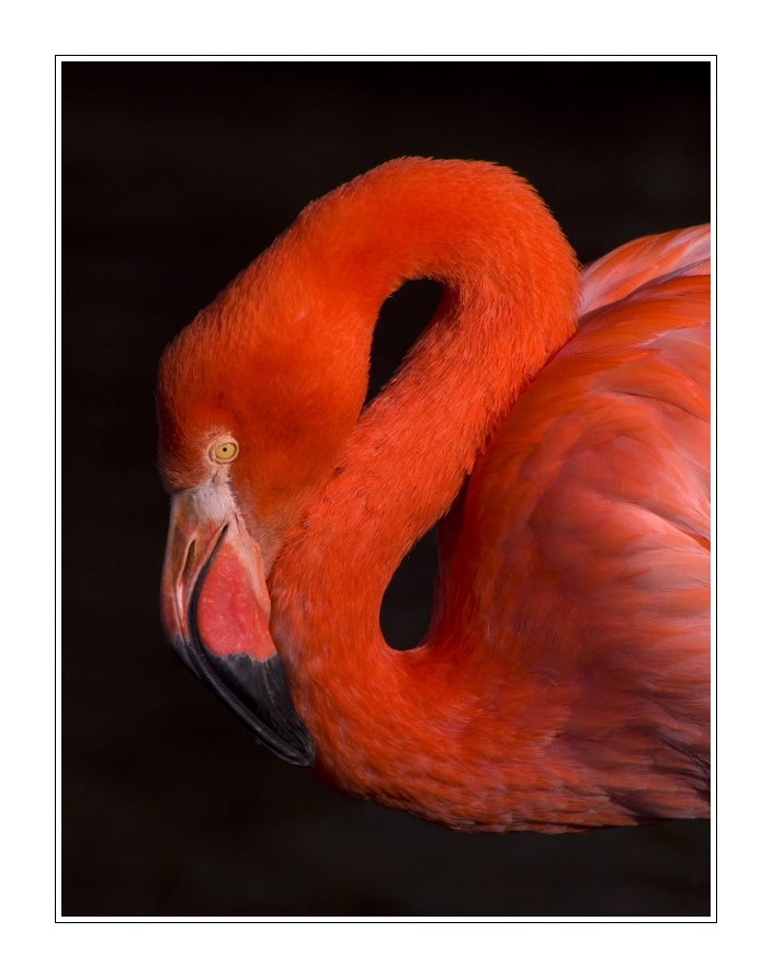 Chtělo to jít s objektivem trošku níž, ale jinak moc pěkný portrét plameňáka.