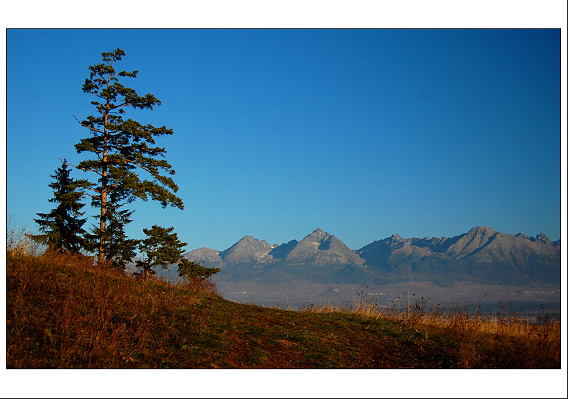 Odcvaknuté na precháchzke s mojim hafanom na jesen minulého roku asi o 7mej ráno. Chcel som spravit fotku mojho psa, sedel rovno na hrebeni na ceste a díval sa na tatry (celkom pekný pohlad :-) ) ale potom si všimol že vytahujem foták a bolo. Asi sa nerád fotí, vždy behá okolo a ani za nič na chvilku postát a zapózovat :-)