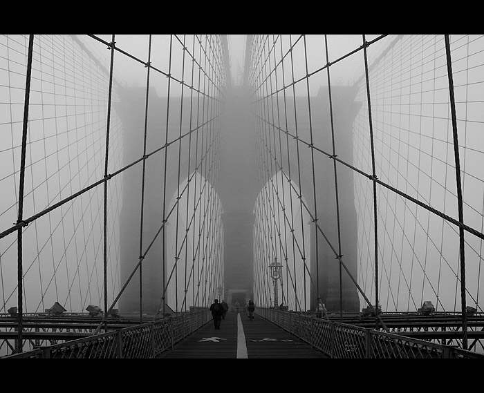 Mlha velice pekne rozbila ten chaos ktery z lanovi na vetsine fotek vznika. Pri pohledu na podobne fotky vzdy vzpominam jak jsem prechazel po traverzach vlevo az k okraji mostu abych vyfotil manhattan, na to se sezapomina.