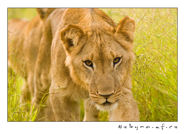 pěkné... z očí do očí... ale nepřijde mi to jako mládě... To je pořádnej kus lva :)