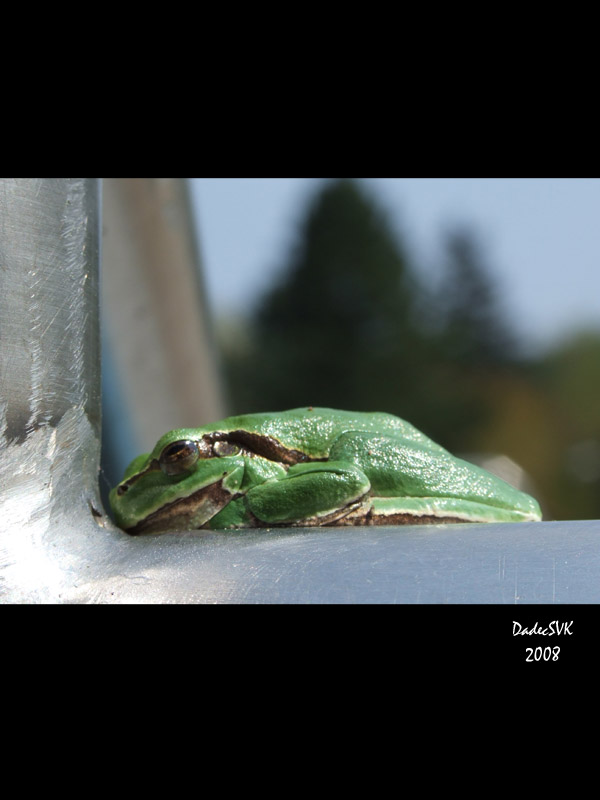 zabka a jeji nejmilovanejsi kus plechu...jak se k nemu tuli, je evidentne zamilovana:-)