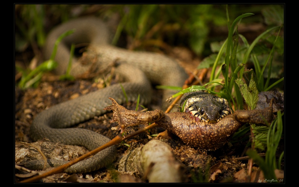 ˝Intuice˝ mi nedala a hnala mě kamsi, kde jsem narazil na tento okamžik, kdy užovka trávila právě lapenou kořist. Nikdy jsem to neviděl!První fotka tohoto žánru odemne, tak bych prosil o komentáře. Hlavně pány fotografi fauny. Díky za zastavení. PM