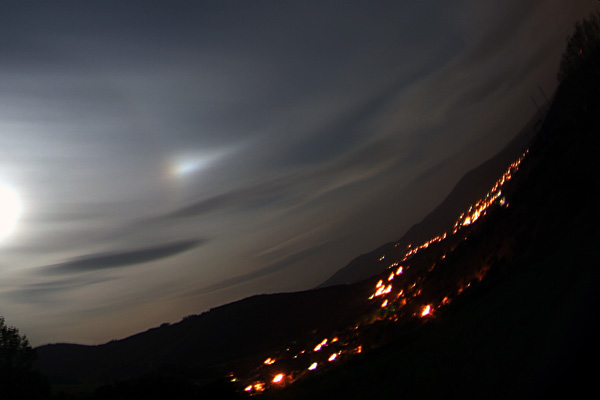22° parhelium u měsíce vzniklé na idealně orientovaných destickových krystalech v cirrostatových oblacích.