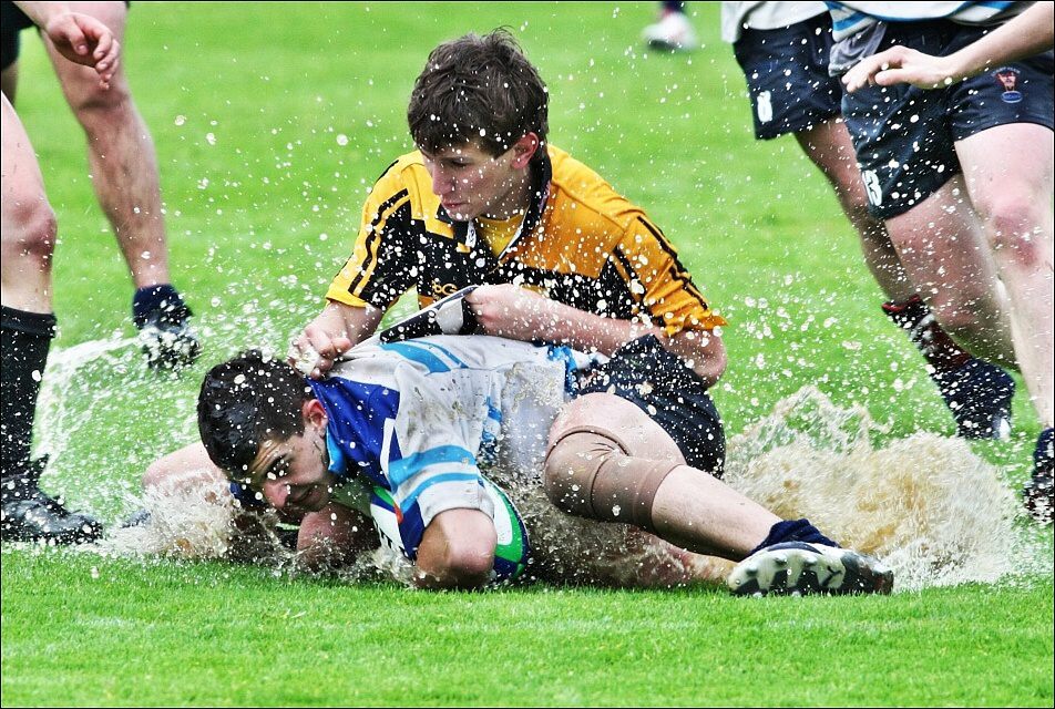 Po vydatném lijáku hřiště vypadalo jako bazén na vodní pólo a né na rugby.