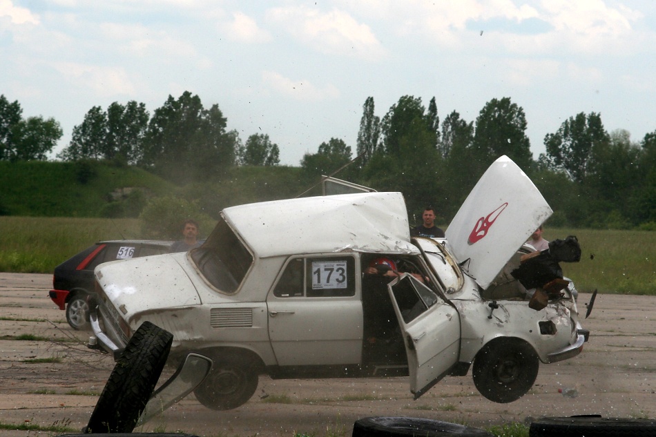 CWC Milovice.Stovka 3 kotrmelce.Posádka byla odvezena do nemocnice.Vše dopadlo ok.Jednalo se jen o oděrky.celý seriál na www.rally-mania.cz