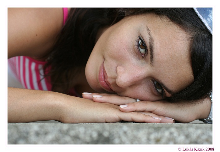 pekna foto, prijemna modelka ...len PHR, hodinky na ruke, ramienko, bledy trojuholnik pod prsiami ..... treba na tom kompo este trosku popracovat .... a bude to super ...