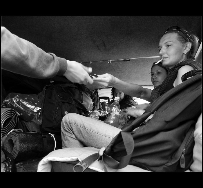 kdyz s cestovani tak proc ne z auta :-) btw: typek vzadu (nebo spis vpredu auta) nema cigara ze jo :-D