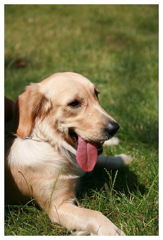Bylo zvykem, že mou fotogalerii vždy hlídal nějaký hafan. Už fotky do galerie sice nevkládám, ale kdybych začala, tak ať je má kdo hlídat :). Je to taková momentka bohužel cizího hafana. Není to fotka na kritiku, a vytyčení chyb, ty raději avizuju předem. 1)seklá tlapka, 2) né moc ideální světlo, což se projevilo na srsti pod obojkem i na oušku, 3) o kompozici taky pomlčet, já vím, když už je zadeček ve stínu, alespoň to ouško mohlo být celé na slunci a né taky částečně ve stínu 4) oči mohou být nazvány černými dírkami, ale měl je dosti hnědé, tak to se snad přejde :), 5), ta tráva nalevo od jazyku mohla být vyretušovaná, ano mohla, ale není...Tak snad je to vše. Na svou obhajobu zde, slušně zvolená HO a co je důležitější, prostě SE MI LÍBÍ..:d