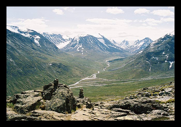cca 1500 metrů nad mořem. Nad výchozím bodem Spiterstulen. Cestou na nejvyšší horu Skandinávie Galdhoppingen (2469 m. n. m.). Mimochodem, pěkná tůra, taky si ji někdy zkuste :)