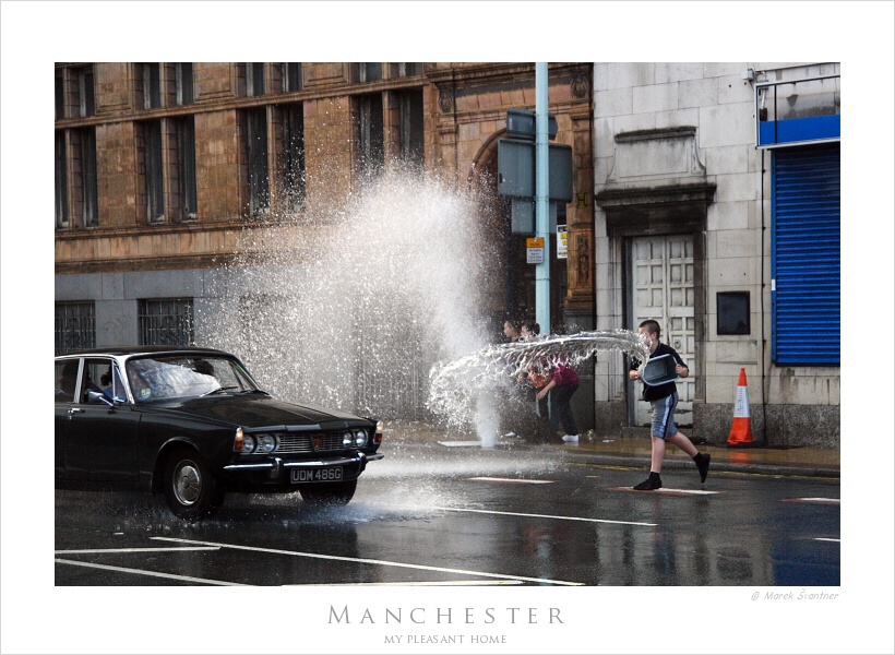 The life in Manchester and one of the moment from there. The hydrant on the street was broken (more than 1.5 hours water was not stopped) and young children had a big joy of that. They were directing the water on to the passing cars. If it was a cabriolet.. it was the most funny for them. Of course, not for the persons inside such a car.