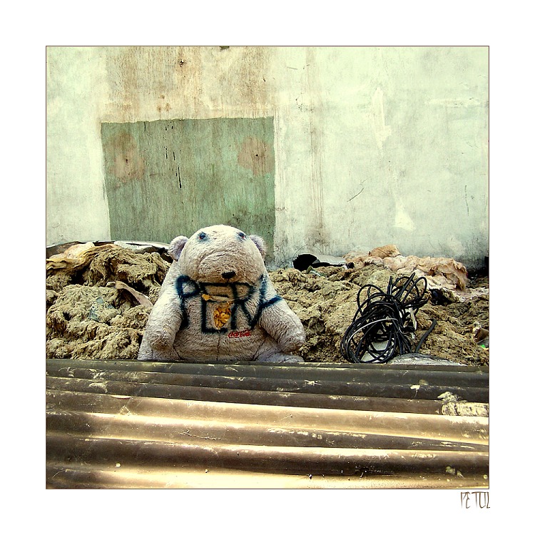 Fotka skvělá, ale zničenejch, vyhozenejch nebo jinak znehodnocenejch hraček je mi vždycky líto... Padá z nich na mě nějaká jakože tíseň, nebo co. :-( I když byl tenhle "jen" reklamní, asi... Stejně.