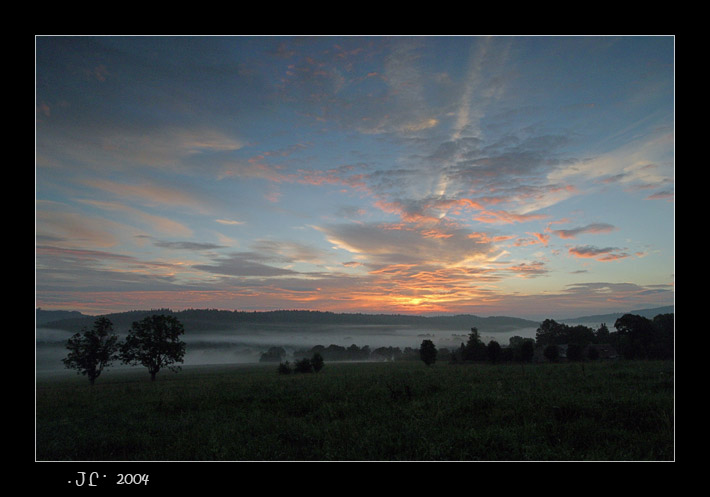 Miluju tyhle rána, tu atmosféru, ten vzduch, to přírodní ticho a baví mě sledovat jak slunce postupuje vzhůru, a čím více osvětluje zem, tím více se začíná vše probouzet, tráva, voda, brouci, zvířata..... A najednou jsem se podíval okolo sebe a zjistil jsem, že vlastně tuhle fotku pořizuji mezi krávama, které se okolo pasou a střídavě na mě čučí...
