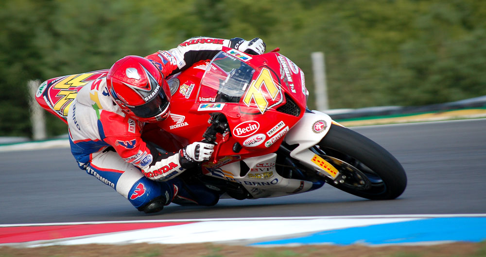 Vítěz včerejšího závodu Superstock 600 Patrik Vostárek.