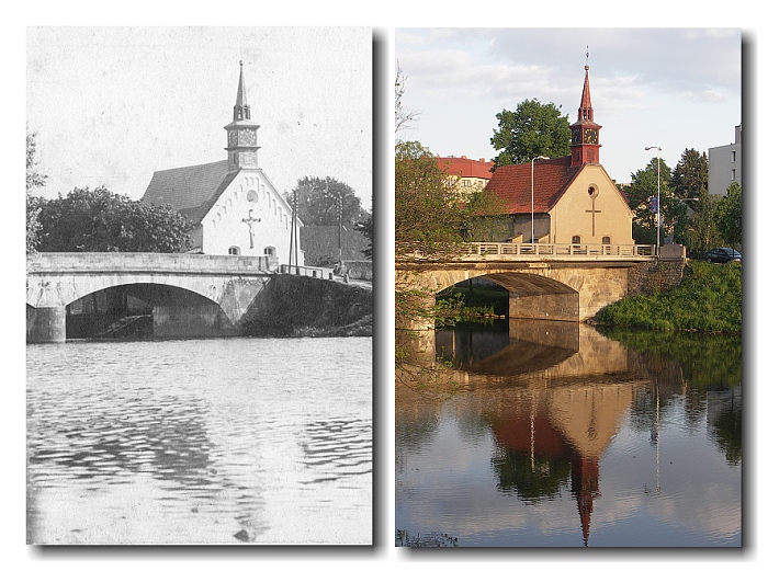 To mám ráda, srovnávačky, mám doma knihu plnou takovýchto fotek z Olomouce. A štve mě - že ty stavby vypadaly dříve mnohem lépe. I tady je ten kostel předělán, zjednodušen :( a obestaven panelákama...