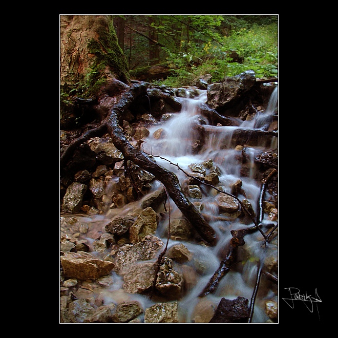 Slovenský raj je nádherný. Horský potok pod Nálepkovým vodopádom zurčí pomedzi kameňmi a koreňmi mohutných stromov starého pralesa. Technické údaje: F:11; ISO:125; čas:0.6s; Lokalita: Národný park Slovenský raj, Východné Slovensko. Úpravy základné.