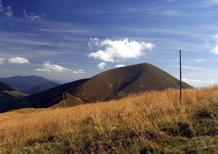 Průlet letadla, ořez, pravá tyč rušivě protíná linie kopců