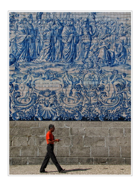 Zaber zachytava vyzdobu kostola s 'azulejos'. Jedna sa o namalovane kachlicky. Vacsinou su na nich zachytene vyjavy z historie Portugalska.