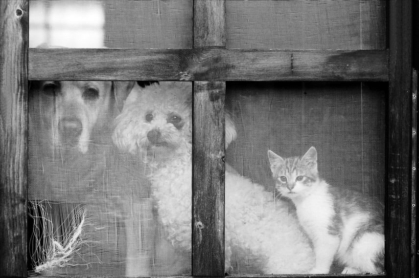 bugata - :o) Koukají skrz dveře na zahradu, kde s semnou byla ještě jedna toulavá kočka, tak jsem měla radost jak tam jsou pěkně naskládaný, ale dlouho jim to nevydrželo :O)