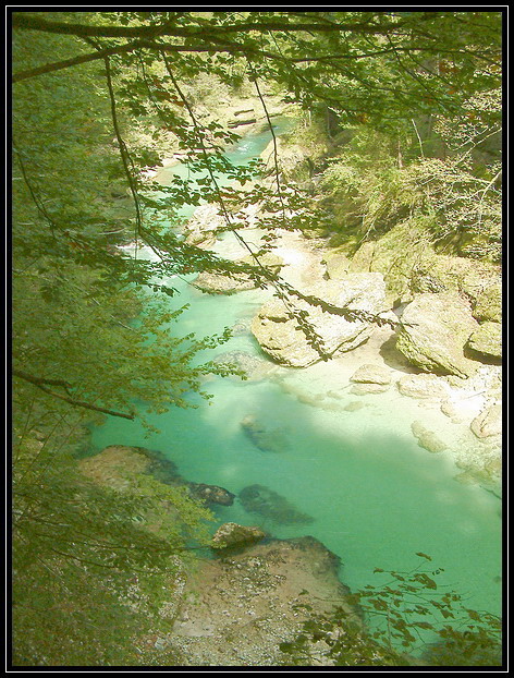 Mám několik záběrů téhle říčky. Vybíral jsem, vybíral a nakonec zvolil tenhle průhled mezi stromy. Řeka je ještě krásná, ale taky tajemná..
