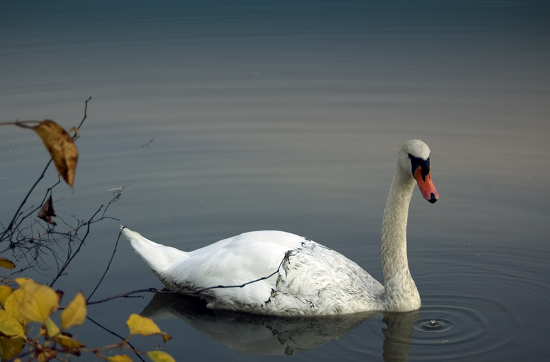 kompromis - odraz těla nebo nahoře kruhy. Kruhy. Mě se ta fotografie líbí. Kromě tedy - nemožností podívání se do očí labutích.