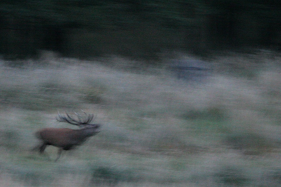 Podle mě to krásně vystihuje atmosféru říje ve chvíli, kdy se už natolik setmí, že jsou vidět jen neurčitě se míhající siluety a šerem se rozléhá hluboké troubení ;-) Bezva.