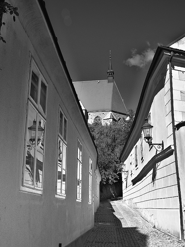 pri zmensovani si to prehnal s doostrovanim. hrany su uplne zubkovane, prevod do cb je tak na hrane, ale je to skor sede, kompozicne nezaujimave? co si tam fotil ulicku ci kostol ci co? bo ked ulicku, tak nezaujalo a ked kostol, tak z neho nic nevidno. tiene v ulicke tiez nepomohli. a na spodu by som radsej viac pridal a hore urezal.