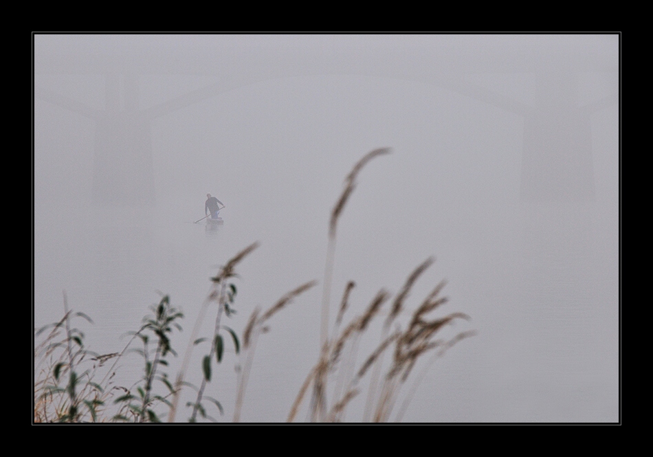 Páči sa mi viac tá prvá, práve preto, že obsahuje iba tri prvky: hmlu, kanoistu a kvetiny. To jej dáva zvláštnu atmosféru. Táto je tiež pekná, ale už ju vnímam "iba" ako kanoistu ktorý sa trápi v inverzii. Ten most ju viac zreálňuje.