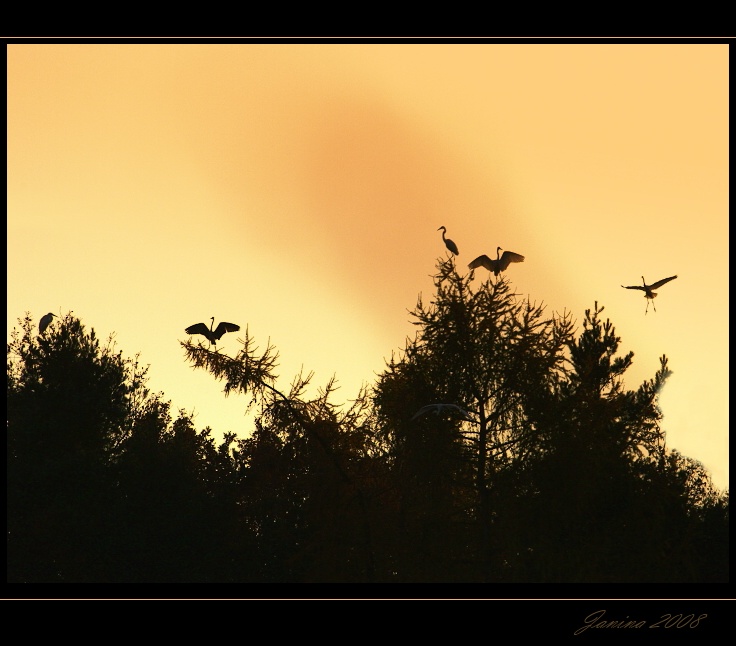 Děkuji za bodíky a koment,dneska jsem dostala nový objektiv a tak jsem musela něco nafotit a měla jsem štěstí na tenhle západ sluce s volavkami.
