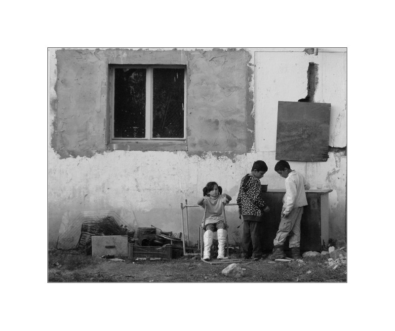 působí na mne nekvalitně, ale možná je to jen převodem na webovou kvalitu. Hm, to rozložení čtverců (oken a toho papundeklu, či co to je) ano, dotyk hlavy, ne. Děti ano. Scéna ano. No tak nějak víc ano než ne, tak ...