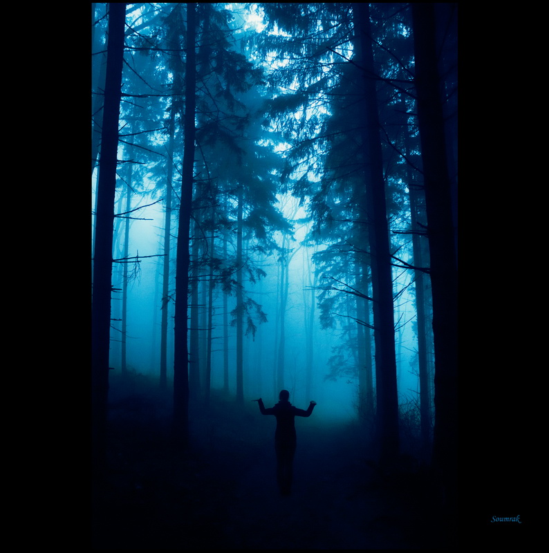 psycho, postava s pahýlem v tmavém lese:)