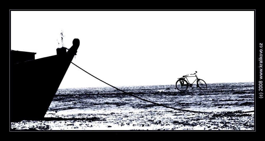 To Roman, nene, kolo stoji na brehu z pisku, lod je tesne na brehu, kde je voda, po uprave to ma podobny odstin jako ve skutecnsti. Voda byla hneda, pisek taky.... Pri monzunu je i ten pisek pod vodou.... kde je v tu chvili kolo, natoz cyklista - tak to fakt nevim.... :-)