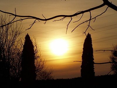tato fotografie je mala , vetev zasahujici do slunce mi taky nepriprada uplne dobra , predpokladam ze zamer byl zapad slunce se dvemi stromy , vypadalo by to efektne , ale to okoli to kazi