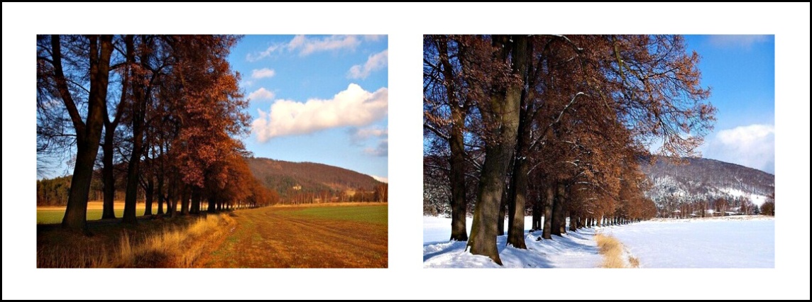 Petsen, moc dík za připomínky,vlastně jsem ty fotky ani neplánovala,jeden den jsem fotila jen tak,že krásně svítilo slunce a do rána napadl sníh,takže to byl momentální nápad dát je vedle sebe,ale ta alej má 2 km a stromy jsem odpočítané neměla,tak někdy příště .