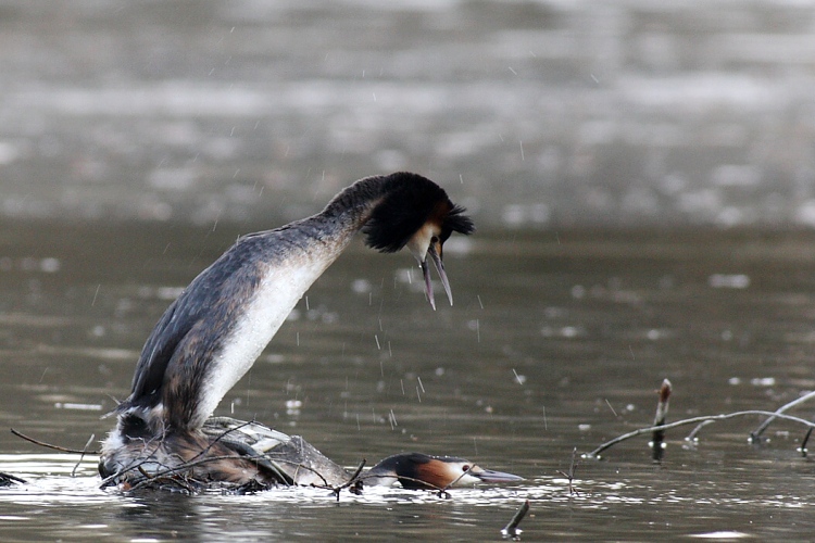 Celý den probíhal tok potápek. Až večer, když zapadlo slunce popběhl akt páření.