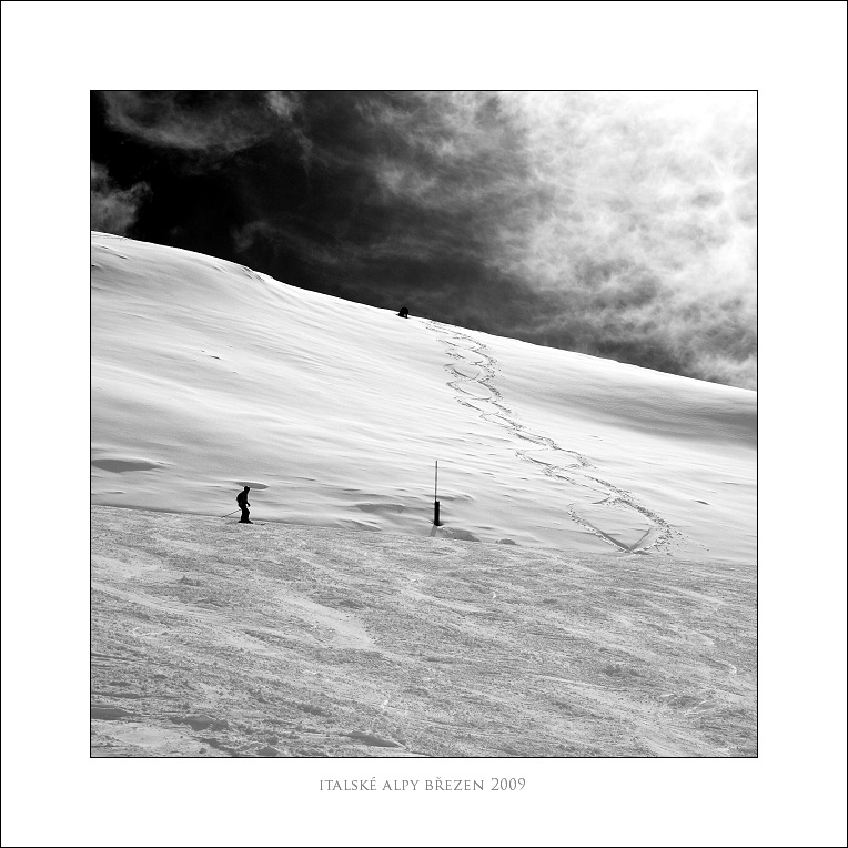 Zaujimavá. Páči sa mi ako obloha korešponduje so "vzorkou" svahu. A tá stopa naprieč, to museli byť lyžiarske námluvy :-)