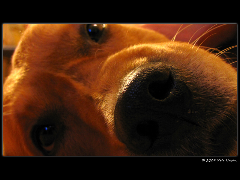 Lezel a koukal na mne.
