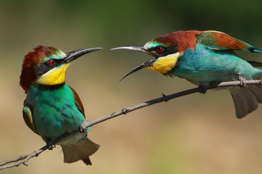 Nie je to hádka medzi partnermi. Ale medzi hniezdiacim samcom a mladým minuloročným jedincom. Ročné vtáky často krát pomáhajú rodičovskému páru pri hĺbení nory a výchove mláďat. Tak sa môže napríklad stať že na jednu hniezdnu noru prilieta súčasne aj 4-5 rôznych vtákov. Staré pomoc radi prímu, ale beda ak pomocníci sadnú na ich obľúbené miesto vtedy nastáva výmena názorov...