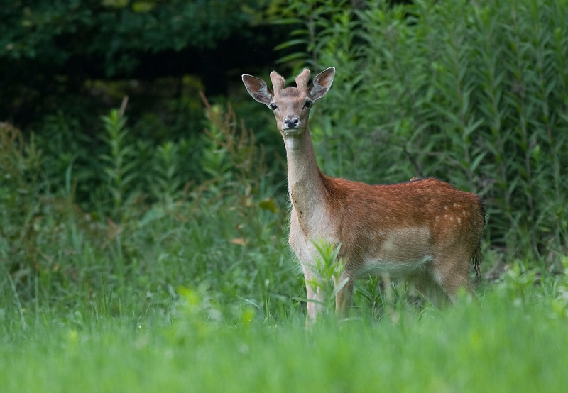 Pěkná fotka, nádherný mladší daněk s rostoucím parožím.