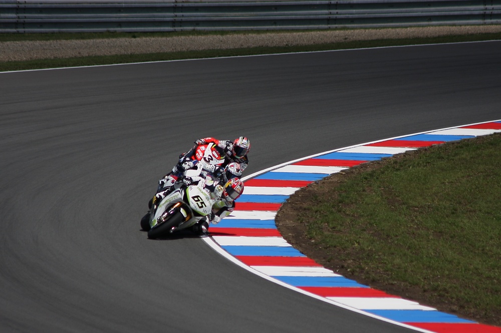Nazdar pane Černoch,dík za komentář,ono fotit tenhle druh sportu je přece jen o štěstí.Člověk si stoupne na místo a fotí.Kdybych je fotil víc z boku,tak tam už končí zatáčka a motorky jsou narovnané.Navíc tahle situace se už po celou dobu neopakovala(tam,kde jsem stál).Kompo neřeším.Kvalita fotografie je rovna použitému objektivu.Zatím nemám na pevnou 300/2.8 nebo podobné.Jako sportovní momentka jsem spokojen.