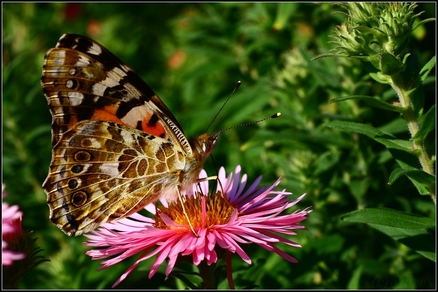 stažená křídla, moc ostré světlo, pohled dolů a moc ostré pozadí