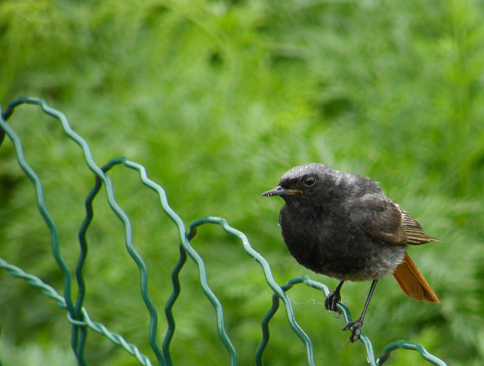 Třeba to může být rehek domácí - Phoenicurus ochruros, ten zahradí se mi zdá moc barevný. Ale nejsem odborník...