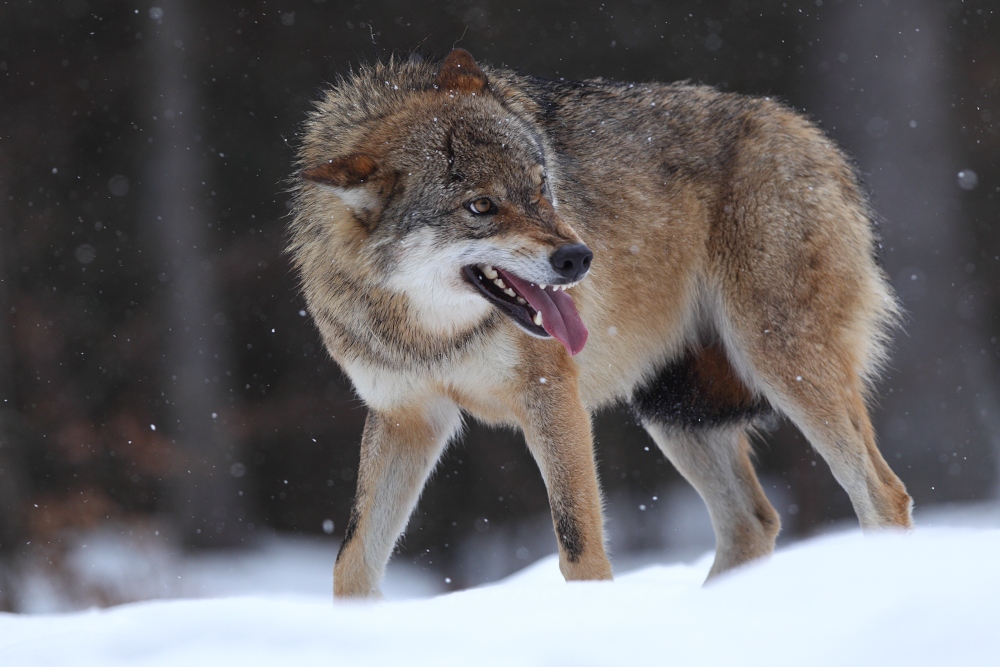 To, co se dělo dnes v národním parku Bavorský les, to opravdu nepamatuji. Neuvěřitelné, jezdím tam už druhým rokem, ale tohle! Dnes se vlci poprali o hárající samici tak, že z jednoho tekla proudem krev a měl vykousnutý velký kus živého masa na zádech, celkem otřesný pohled, nevím jestli tohle přežije, ale bylo to opravdu kruté. Samci se dokázali skoro 3 hodiny prát o jedinou samici a tak o souboje nebyla nouze. Pokusím se večer napsat malý článek a přidat více fotografií, byl to opravdu silný zážitek. Konečně i pořádně hustě sněžilo, takže atmosféra byla pohádková.