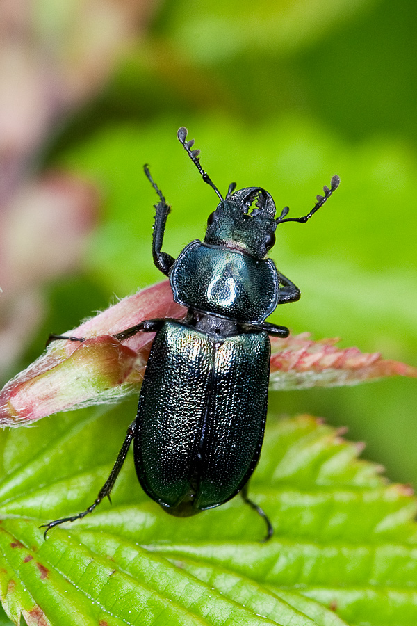 Samičky roháčka kovového (Platycerus caraboides) v dnešních dnech rády vylézají na vrcholky náletových stromků a vypouštěním feromonů lákají samečky k milostným hrátkám. A víte, přátelé, proč se říká roháčům roháči? Určitě mnozí víte a pro ty co nevědí... ;o) Není to kvůli rohům samců roháče obecného, ale kvůli do rohu zahnutým tykadlům. Koukněte na hlavičku tohoto broučka a vidíte, jak se tykadla krásně ohýbají do tvaru písmene L. Podle tohoto znaku poznáte roháče kdekoliv na světě, ať se maskuje třeba za potemníka nebo chrobáka.