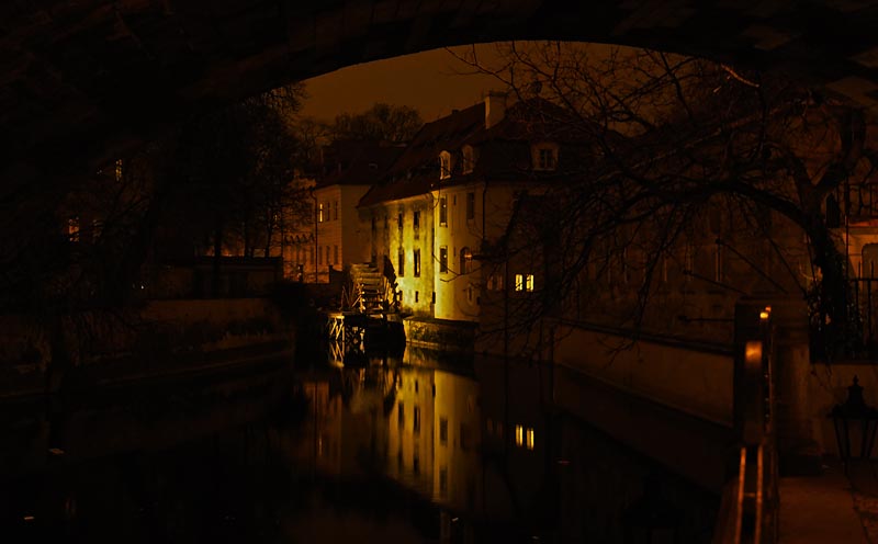 formát na šířku je zdůvodnitelný snad snahou zachytit celý mostní oblouk - ten ale zaniká; z fotky vystupuje jen osvětlený střed - asi opravdu spíš na výšku