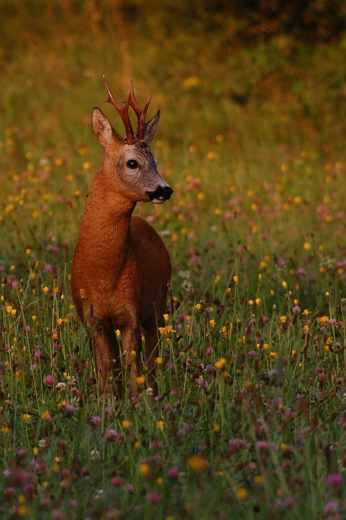 Z říje minulého roku.Fotil jsem jednoho srnce jak odpočívá v trávě a najednou,kde se vzal tu se vzal tento silák.Vyhnal svého soka,který mě při útěku z louky málem porazil.Bohatýr vítězně zapozoval a poté hrdě odkráčel.Už se moc těším na letošní.