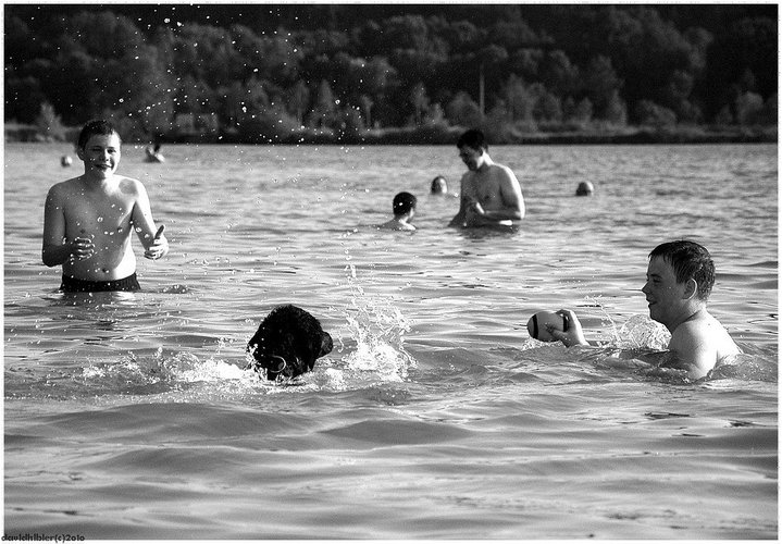 Brí, můj pes, miluje vodu, bohužel i bahno. Miluje taky balony. Když je balon ve vodě, jsou Vánoce i v létě... baví mě atmo fota...