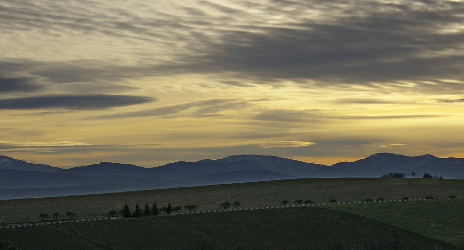 východ slunce - 20 km vzdálené beskydy