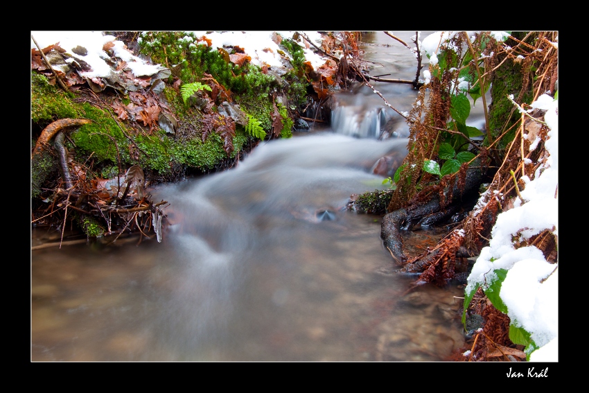 První pokus o vodu s dlouhým časem. Přesto, že už bylo skoro šero, trochu mě zradil sníh a na moc dlouhý čas jsem se nedostal. Alespoň se mi podařilo zachytit vodního ducha (uprostřed) :)