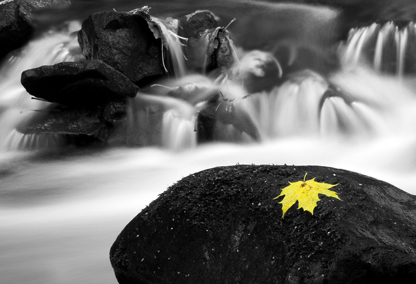 Vím, co by ti k tomuhle napsal Taffey, tak abych ušetřil jeho čas, řeknu to za něj. Tyhle fotky se fotí tak, aby co nejvíce vynikl kontrast mezi ostrým statickým a mázlým dynamickým. Tvoje statické je tak rozpatlané, že tuhle úlohu neplní. Odbarvením tomu též esteticky nepomůžeš, věřím tomu, že by list vynikl i bez toho.
